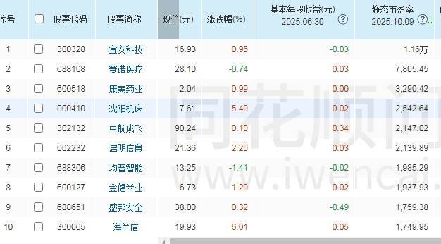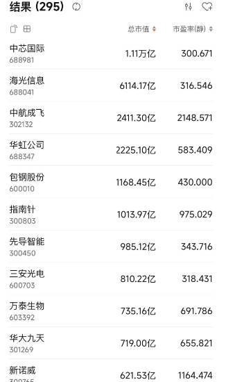 截至目前,中芯国际、海光信息、中航成飞、华虹公司、包钢股份、指南针等两融标的静态市盈率均超过300倍。巧合的是,中芯国际静态市盈率刚刚跨过300倍门槛。目前,宜安科技静态市盈率达到16930倍,排在两融标的第一,赛诺医疗以7025倍紧随其后,康美药业以3290.42倍排在第三。