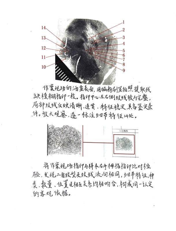 本文开头的那份指印鉴定报告,说来还有些曲折。当时,提取到这份指印后,杨小宇随即就认真分析了这枚残损而模糊的指纹,逐一标注“起点”“终点”“小棒”等细节特征,输入到指纹库中由电脑自动比对,却始终未比中。